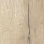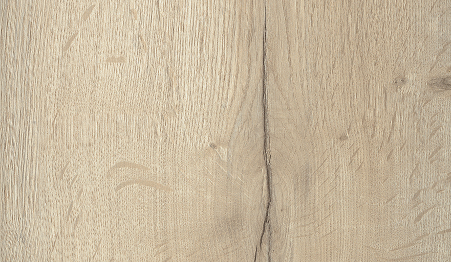Enseña un roble con carácter, con nudos y grietas de carácter nórdico. El variado juego de color entre blanco, beige y gris está abierto a todas las posibilidades de combinación con unicolores. La grieta oscura de la imagen del diseño queda especialmente bien en combinación con tonos negros y diseños casi negros.